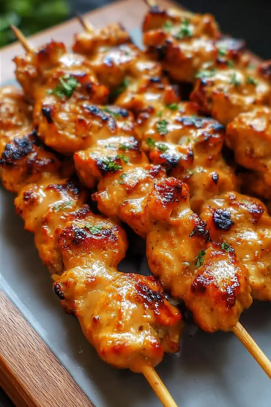 Delicious grilled chicken skewers coated in a spicy bang bang sauce, perfect for BBQs or quick weeknight dinners.