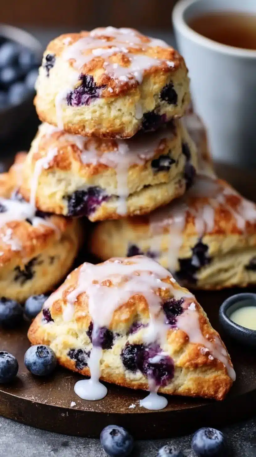 This recipe makes soft, flaky blueberry scones. You need few tools and simple steps. Try it with tea or coffee. For a different lemon note, see these lemon blueberry cookies.
