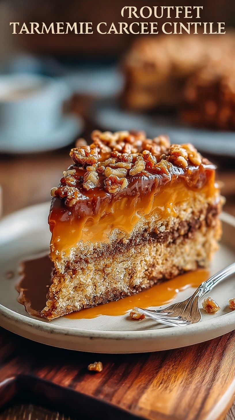 This soft and sweet cake features rich caramel and crunchy toffee bits, perfect for parties or a quick treat.