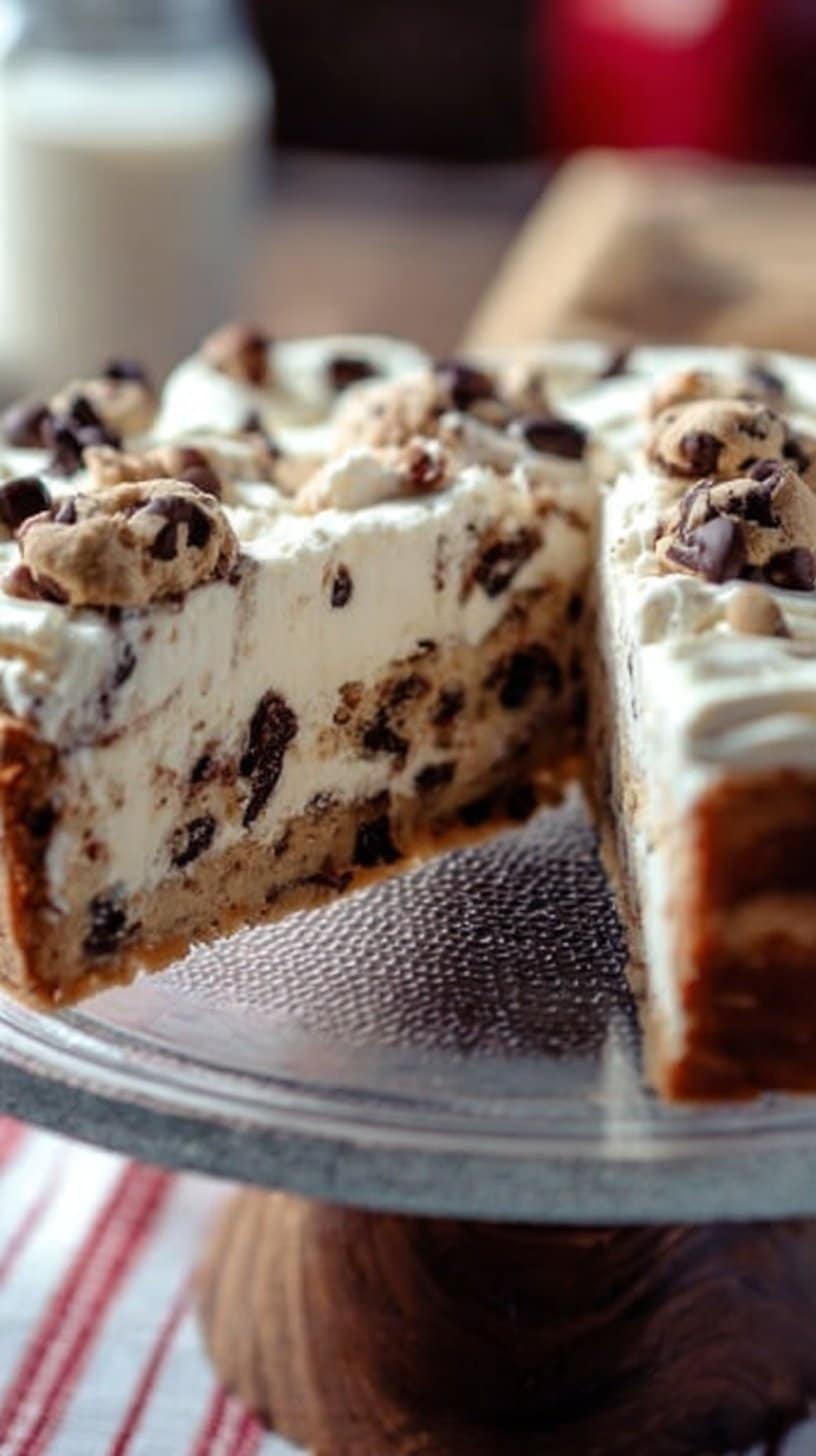 This cake mixes a big chocolate chip cookie and ice cream. You make the cookie first. Then you add ice cream on top and freeze. The cake tastes cold, soft, and rich. For a cookie tip, see bakery style cookies for ideas.