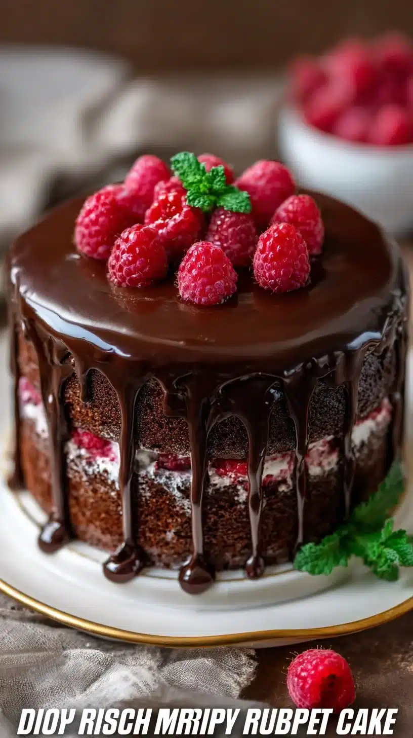 A luscious cake that combines rich chocolate with fresh raspberries, perfect for parties and special occasions.