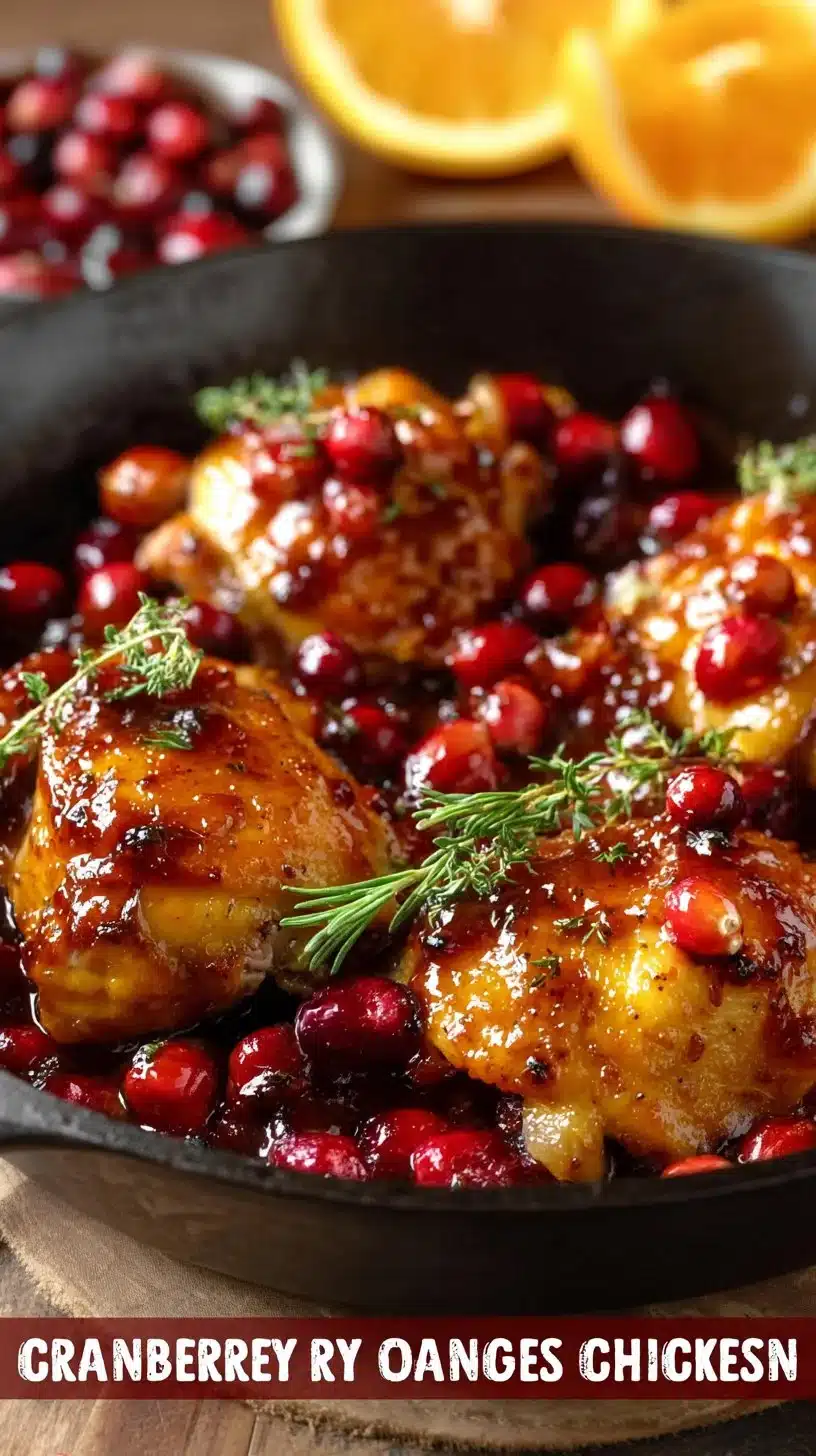 A warm, sweet, and tangy chicken dish featuring a sticky cranberry orange glaze.