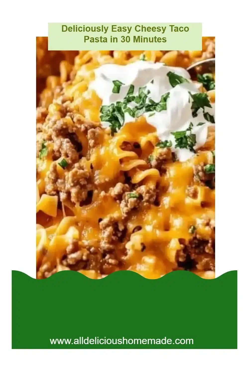 Serve the Cheesy Taco Pasta hot, garnished with fresh parsley. You can pair it with a side salad or some tortilla chips for a fun and complete meal.