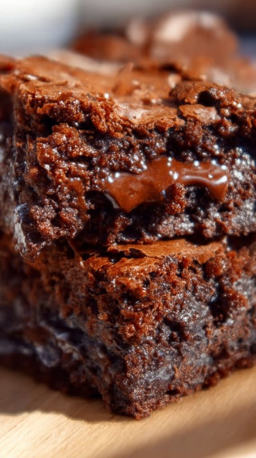 These rich, dark brownies feature a soft middle and a crackly top, perfect for satisfying chocolate cravings.