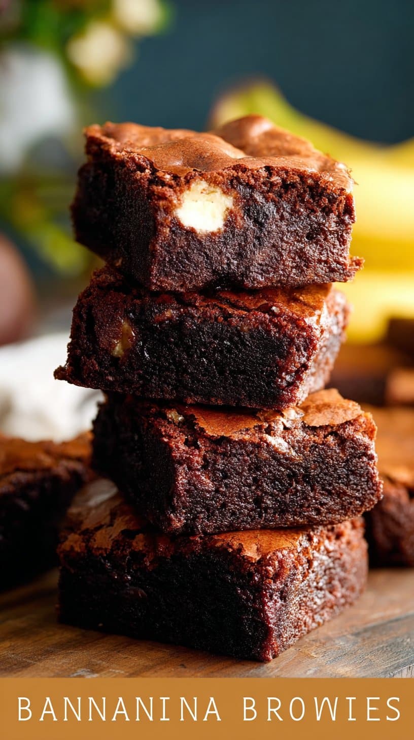 Soft and rich banana brownies made with ripe bananas and cocoa for a deep chocolate flavor.