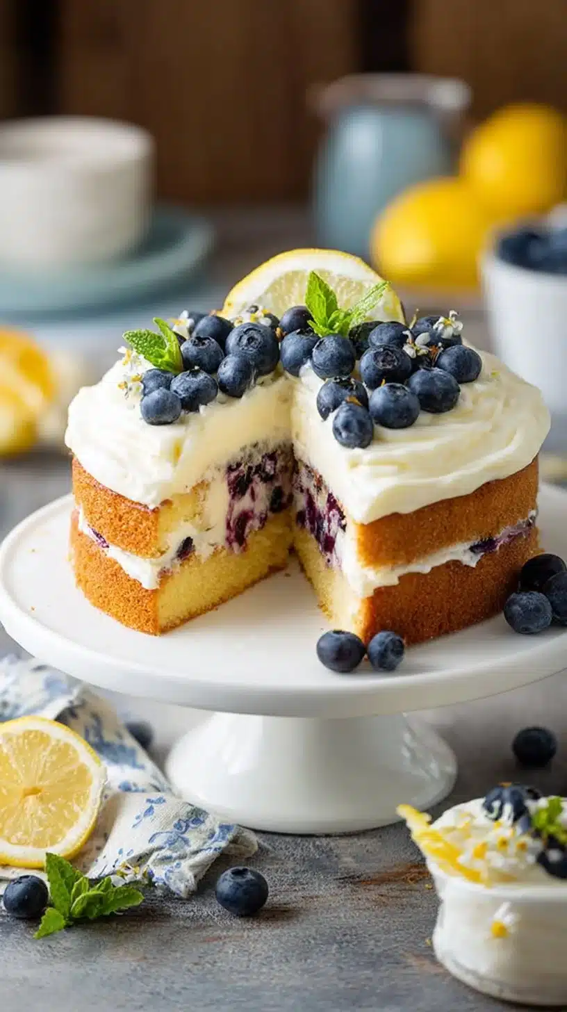 You will make this cake when you want a bright and soft cake. It uses simple things you may already have. It shows off fresh fruit and fresh lemon. Many people like its fresh cream topping. You can also pair it with a simple blueberry lemon cheesecake for a full dessert table.