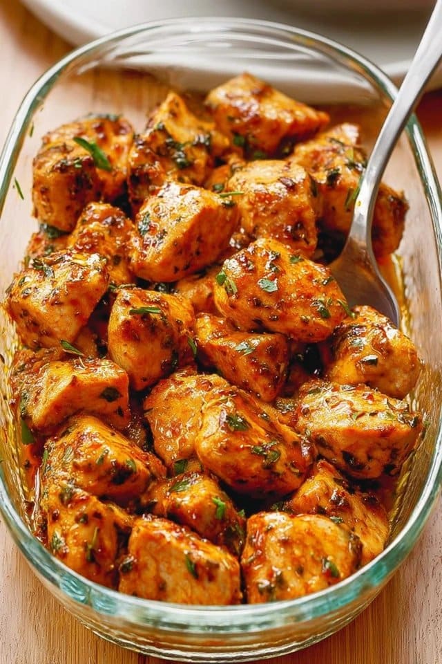 - Garnish with fresh parsley before serving. Enjoy your delicious oven-baked chicken bites!