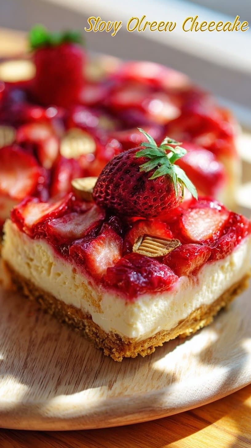 A creamy and bright strawberry cheesecake made with fresh berries and a crisp crust, perfect for parties or snacks.