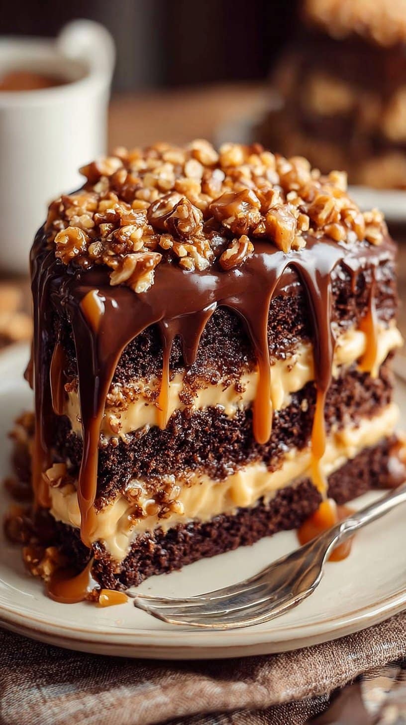 You make this cake if you want a wide mix of tastes and textures. You get deep cocoa, sweet caramel, and crunchy bits in one bite. People smile when they eat it. For a softer top, try the creamy version to see a small change that keeps the same fun.